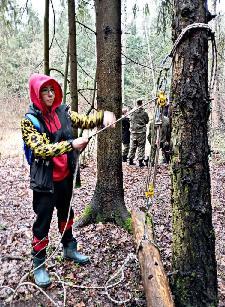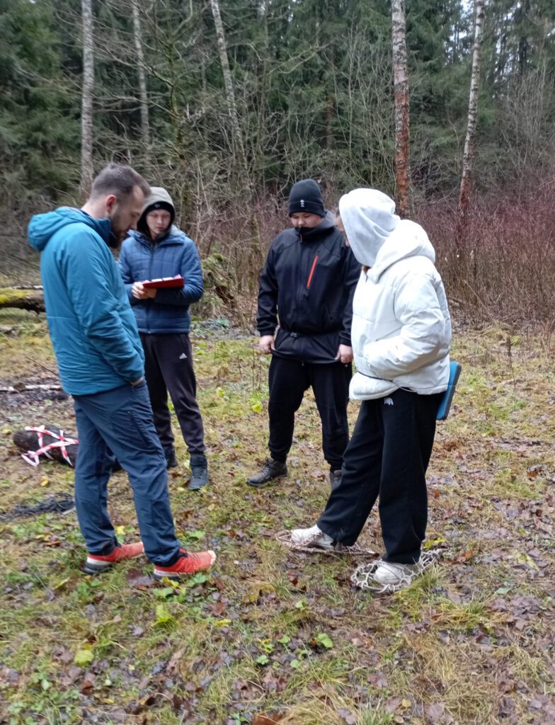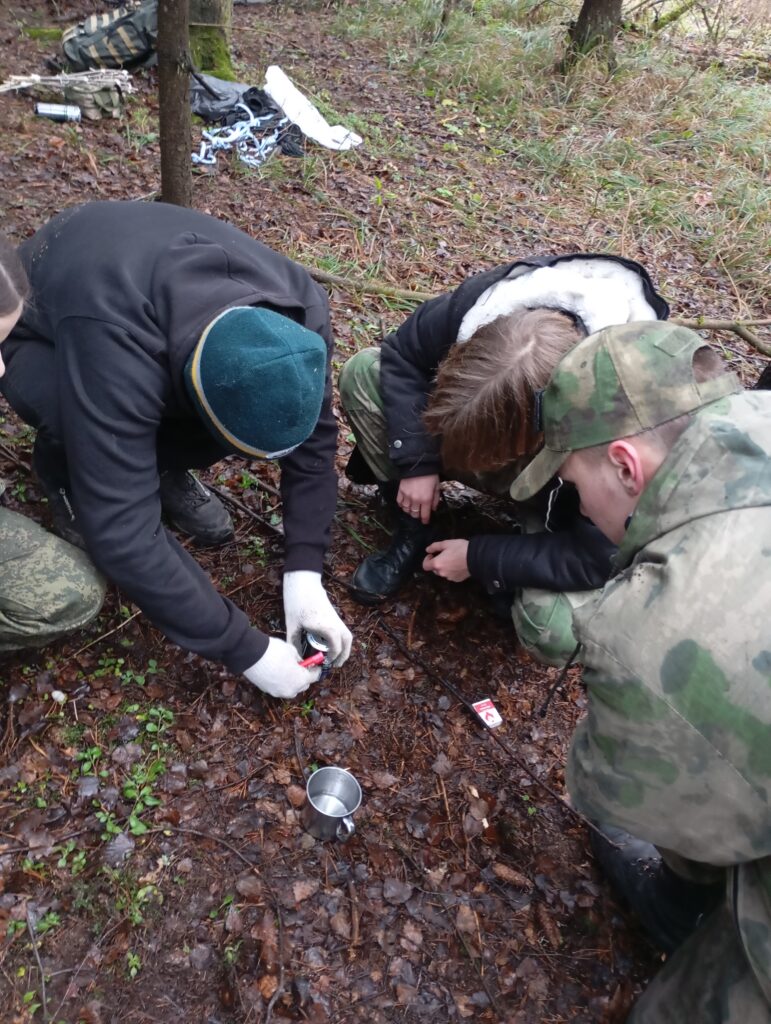 29 ноября 2025 года прошел наш традиционный конкурс «Зимний бивак». Конкурс проходил на территории лесопарковой зоны Пушкинского городского округа. Юные туристы демонстрировали навыки командной работы, выполняя теоретические и практические задания, связанные с вопросами по ориентированию, топографии, оказанию первой помощи и выживанию в природной среде. Самые опытные и умелые участники выполняли более сложные задания: строили из подручных средств укрытия, изготавливали мини-горелки, работали со специальным туристским снаряжением. В связи с погодными условиями (плюсовая температура и отсутствие снега) пришлось частично менять условия прохождения некоторых этапов, а именно: вместо прохождения дистанции на снегоступах по снегу, участники преодолевали дистанцию по траве- «снегоступы» превратились в «болотоходы»!