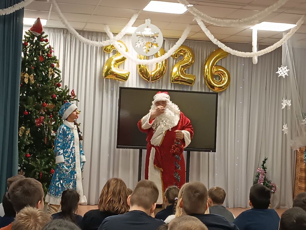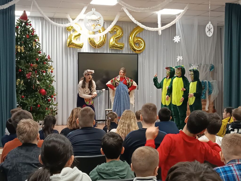 В ходе мероприятия артисты из объединения «Театрализованные праздники» представили ребятам спектакль сказку «Тик Ток Баба Яга». По сюжету которой накануне Нового года в сказочном мире случается неординарное событие: Дед Мороз разрешает войти в наступающий год лишь «хорошим» персонажам, а всех «плохишей» оставляет в завершающемся 2025. В финале все объединяются, создавая подлинную новогоднюю сказку, где каждый находит своё место и оказывается по своему важен.