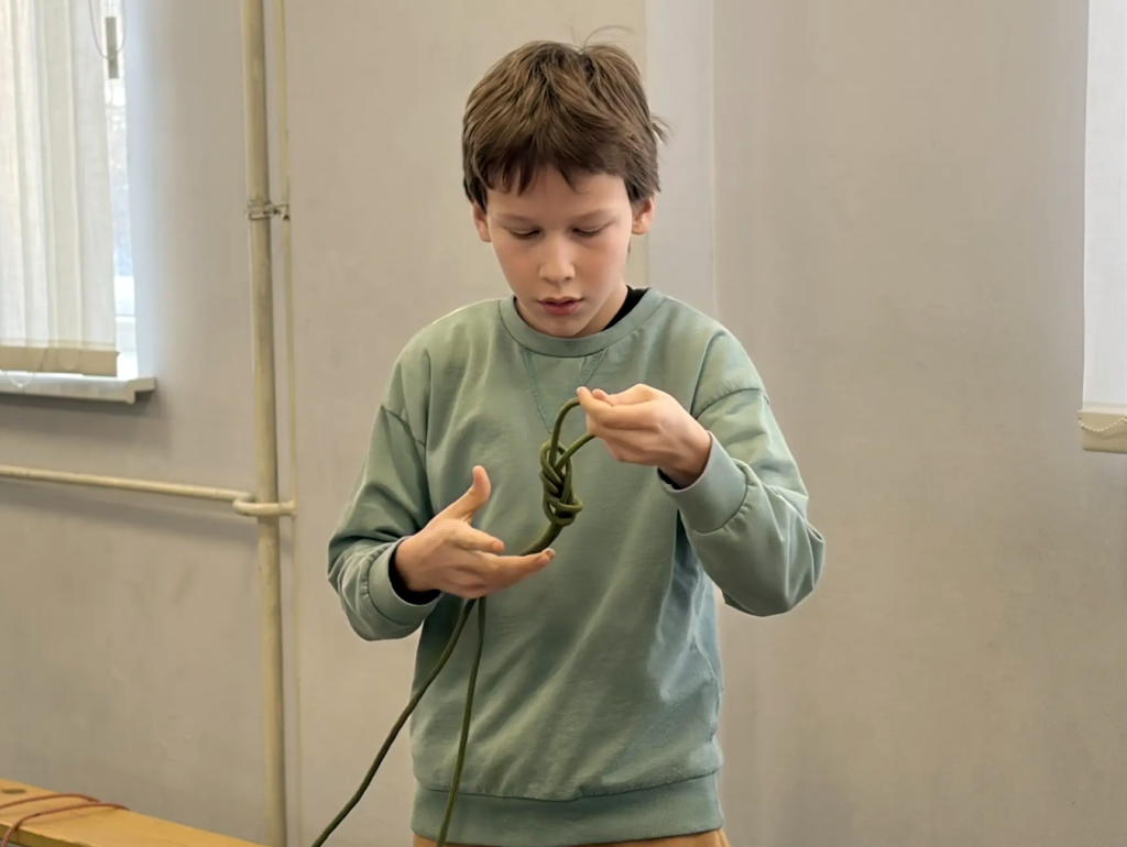 Конкурс проходил в дружеской атмосфере, где участники демонстрировали свои навыки и умения в быстроте и правильности вязания различных туристских узлов. Участникам приходилось проявлять внимательность, концентрацию и умение работать в команде, ведь от слаженных действий зависел итоговый результат. Судьи внимательно оценивали скорость завязывания каждого узла, его надёжность и соответствие техническим требованиям. Малейшая неточность могла стоить команде драгоценных баллов, поэтому участники старались максимально сосредоточиться и выполнять все действия четко и аккуратно.